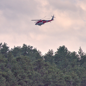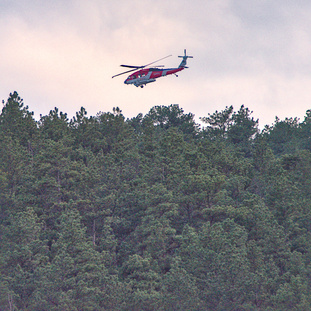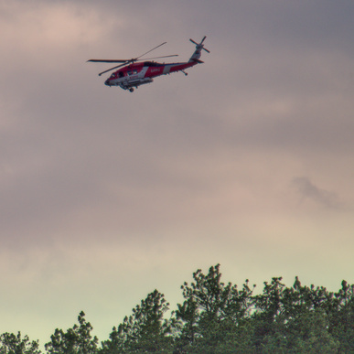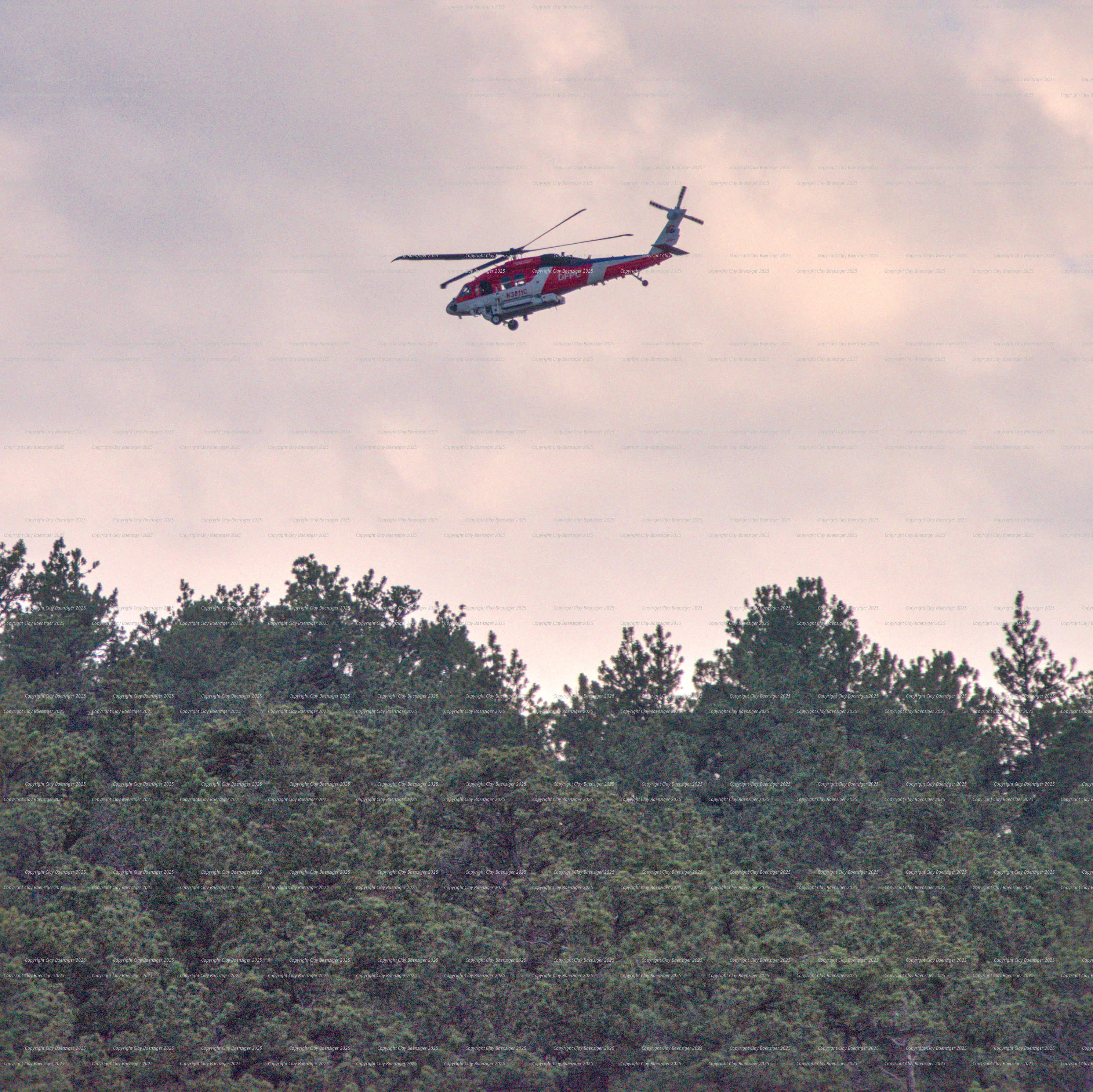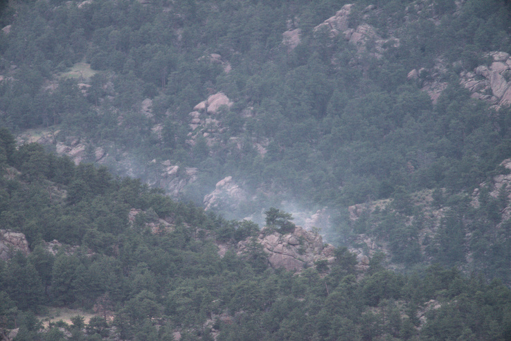 Next came the concern of lightning from above starting trees on fire below, causing the Drummer's Flat Fire. Here we see the Colorado Division of Fire Protection and Control helicopter leaving after a survey.