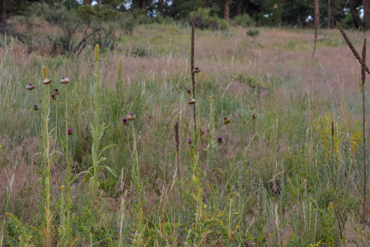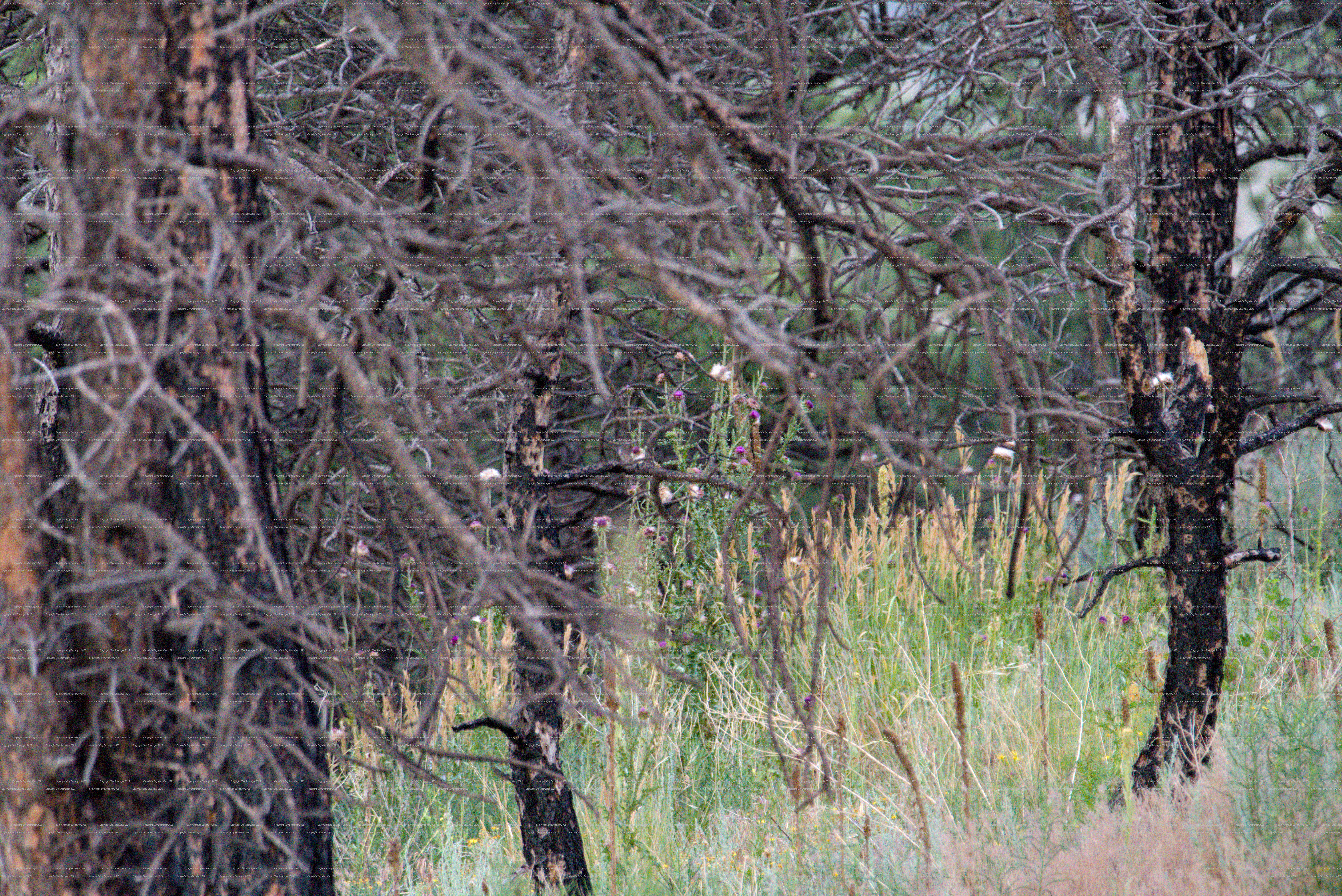 Now while among the recovery from the 37E fire, let's see what affects are still around: thistle, more weeds and fallen, dead trees.